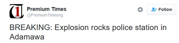 According to a shocking report on Premium Times, a powerful explosion suspected from a bomb has occurred at the Jimeta Divisional Police Headquarters, in Yola, Adamawa State.