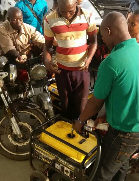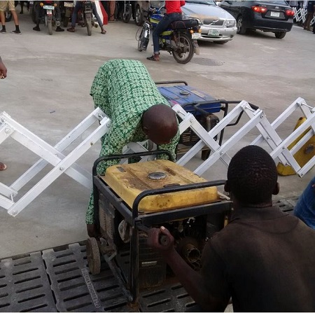 During incidents of fuel scarcity in Nigeria, filling stations try to check the activities of black market operators by not selling petrol in jerry cans. This prompts customers to bring that generator tanks or the entire set to the filling stations to buy petrol.