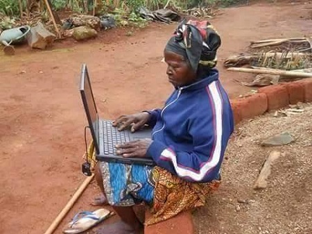 This photo of an old woman 'posing with' and 'using' her laptop in the village has gone viral since it appeared online.