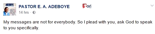 Adeboye said, “My message are not for everybody. So, I plead with you, ask God to speak to you specifically.”