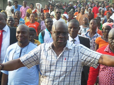 The Governor of Ekiti State, Ayodele Fayose has impressed his people with his stomach infrastructure plans as he distributed money and food items to the people of Aba Igbira, Federal Housing Area of Ado Ekiti.