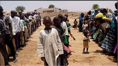 Fresh refugees who fled from Boko Haram attacks in Cameroon arrived the Damare camp in Yola, Adamawa State yesterday.